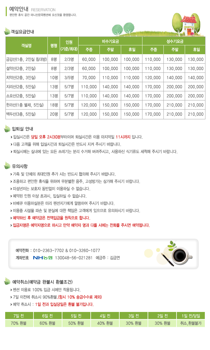 상호 : 마니산문곡펜션| 사업자번호 : 704-15-00353, 대표자명 : 김금연